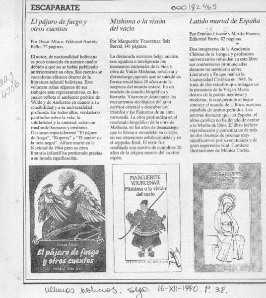 Autores chilenos - Autores españoles - LIVACIC G., ERNESTO - Autores bolivianos - PANERO, MARTIN - ALFARO, OSCAR - PAJARO DE FUEGO Y OTROS CUENTOS, EL - LATIDO MARIAL DE ESPAÑA