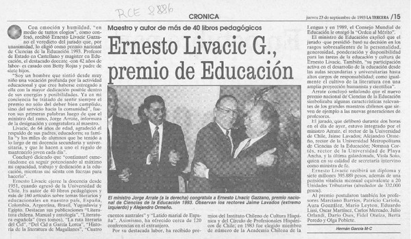 Ernesto Livacic G., premio de Educación [artículo] Hernán García M-C.