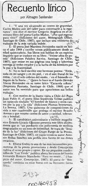 La literatura de Magallanes [artículo] Marino Muñoz Lagos.
