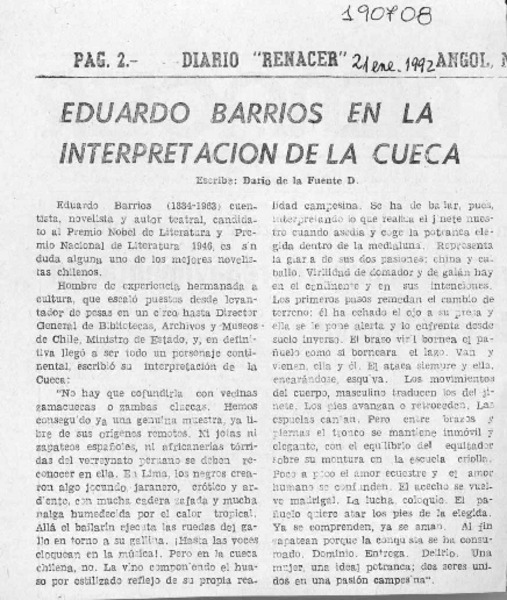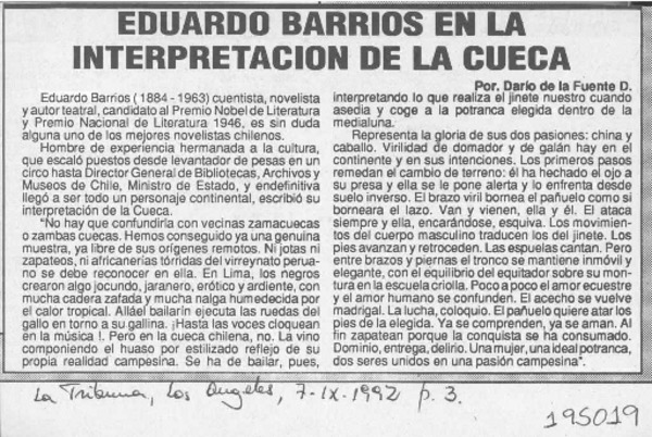 Eduardo Barrios en la interpretación de la cueca [artículo] Darío de la Fuente D.