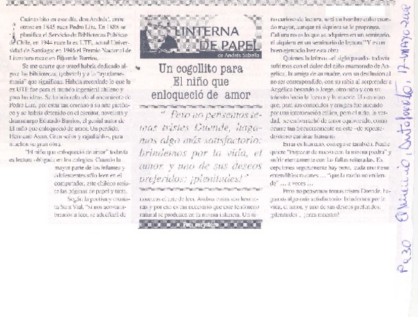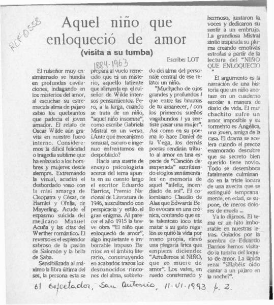 Aquel niño que enloqueció de amor [artículo] Lot.
