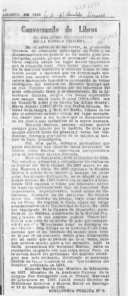 Evocación de Eduardo Barrios [artículo] Martín Alberto Noel.