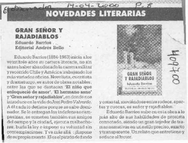 Barrios, Eduardo - Autores chilenos - Gran Señor y rajadiablos