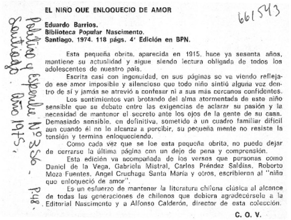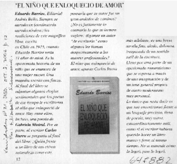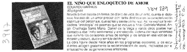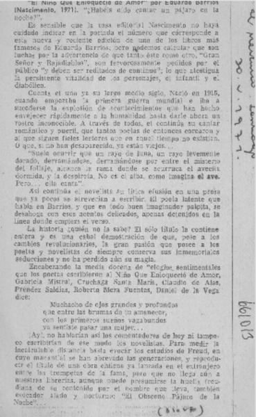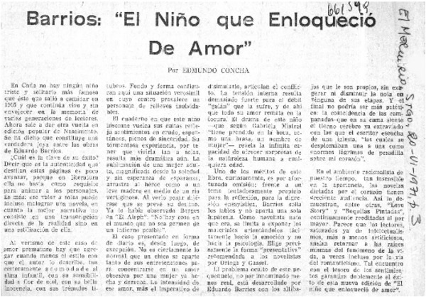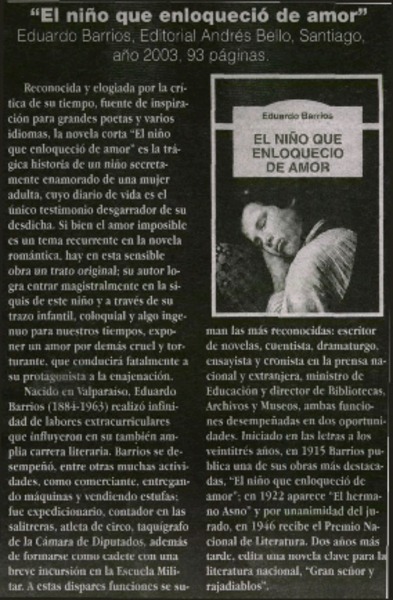 Barrios, "El niño que enloqueció de amor" [artículo] Edmundo Concha.