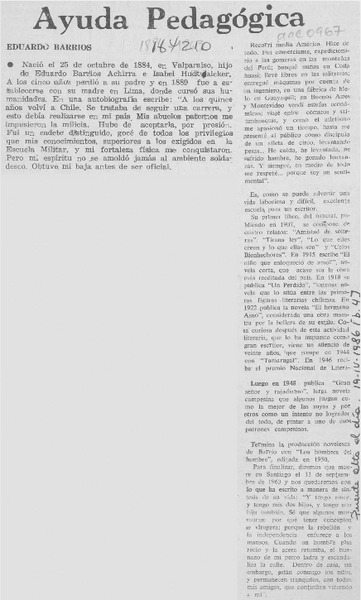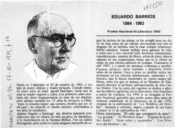 Micro semblanza de Eduardo Barrios [artículo] Julio Ramírez Fernández.