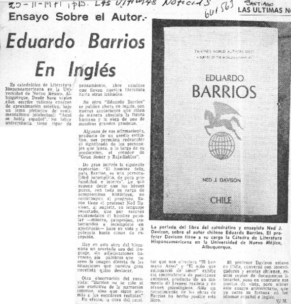 Eduardo Barrios - Autores chilenos - Davison, Ned J. - Barrios, Eduardo