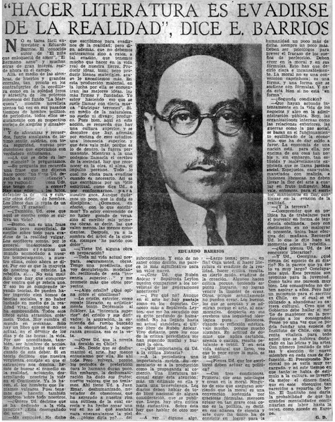"Hacer literatura es evadirse de la realidad", dice E. Barrios [artículo] Georgina Durán.