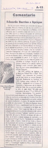Comentario : Eduardo Barrios e Iquique [artículo] Pedro Bravo-Elizondo.