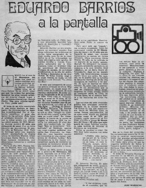 Eduardo Barrios a la pantalla [artículo] Jose Mariscal.