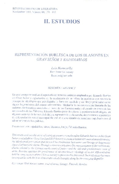 Representación burlesca de los blasones en Gran señor y rajadiablos [artículo] Luis Hermosilla.