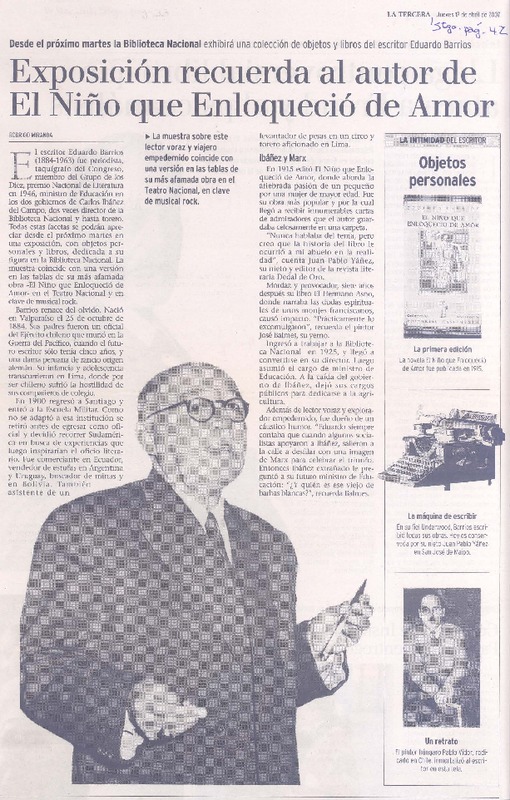 Exposición recuerda al autor de El niño que enloqueció de amor [artículo] Rodrigo Miranda.