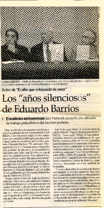 Autores chilenos - Barrios, Eduardo - Autores estadounidenses - Hancock, Joel C. - Crónicas literarias de Eduardo Barrios