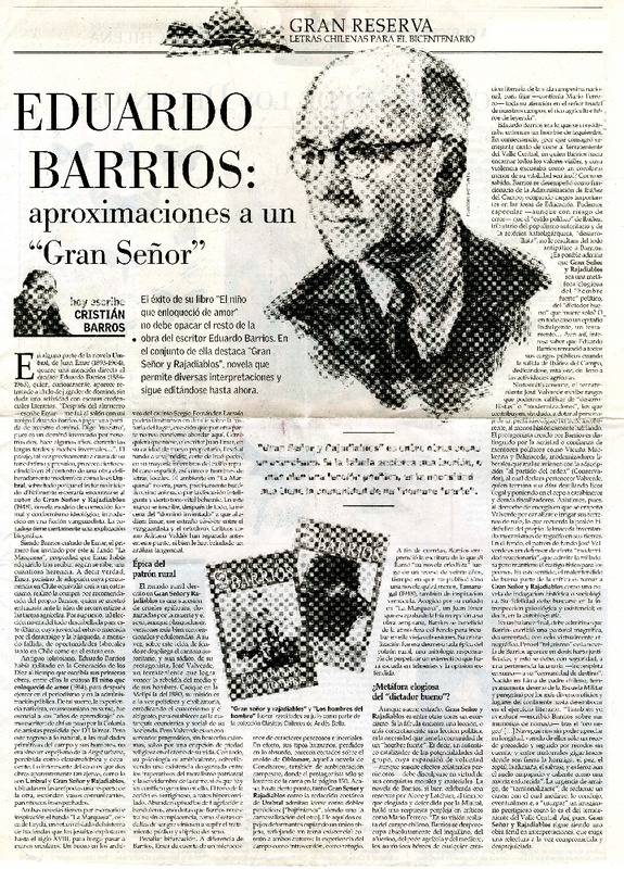 Aproximaciones a un "gran señor" [artículo] Cristián Barros.