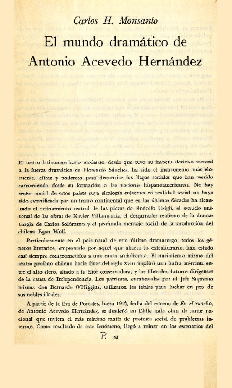 El mundo dramático de Antonio Acevedo Hernández [artículo] Carlos H. Monsanto.