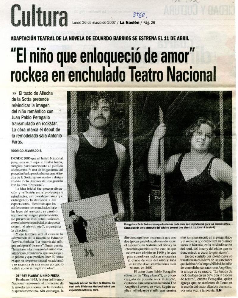 "El niño que enloqueció de amor" rockea en enchulado Teatro Nacional" [artículo]Rodrigo Alvarado.