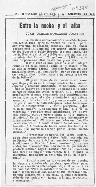 Entre la noche y el alba [artículo] Juan Carlos González Colville.