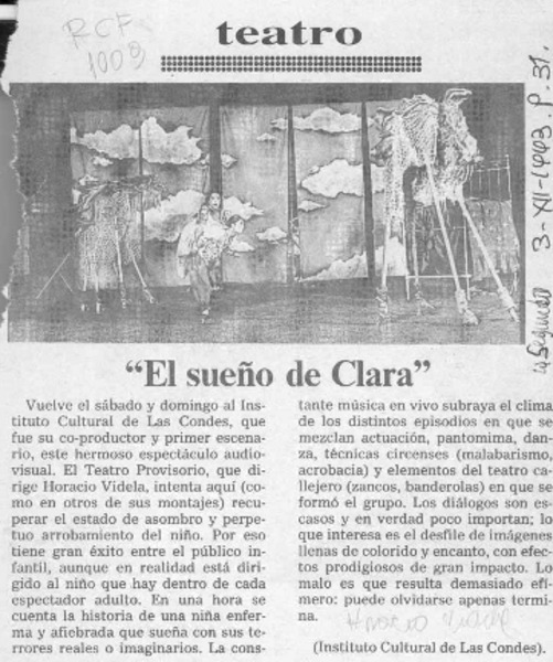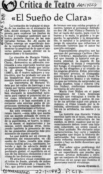 "El sueño de Clara" [artículo] Carola Oyarzún L.