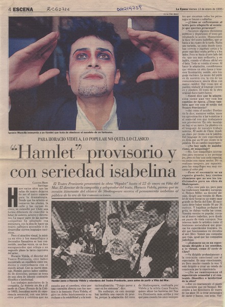 "Hamlet" provisorio y con seriedad isabelina [artículo] Claudia Heiss.
