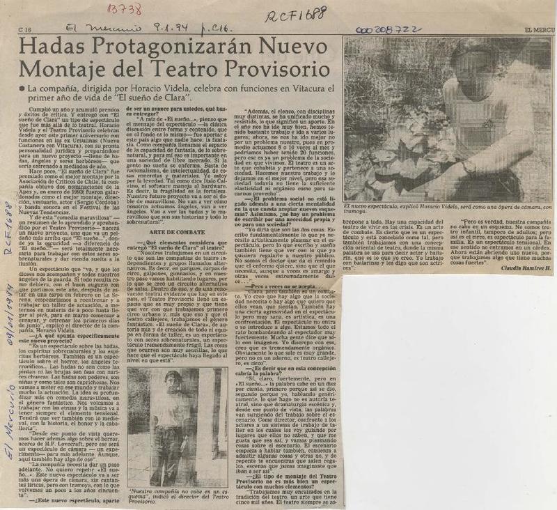 Hadas protagonizarán nuevo montaje del Teatro Provisorio [artículo] Claudia Ramírez H.