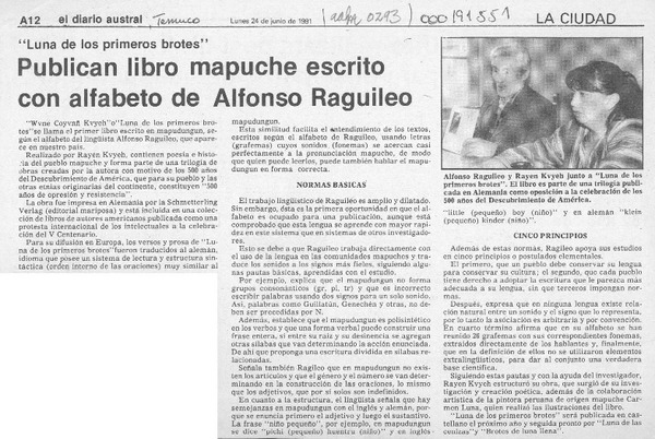 Publican libro mapuche escrito con alfabeto de Alfonso Raguileo [artículo].
