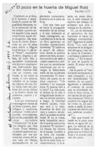 El pozo en la huerta de Miguel Ruiz [artículo] Lot.