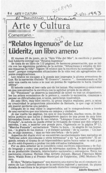 "Relatos ingenuos" de Luz Luderitz, un libro ameno [artículo] Adolfo Simpson T.