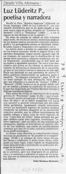 Luz Lüderitz P., poetisa y narradora [artículo] Pedro Mardones Barrientos.