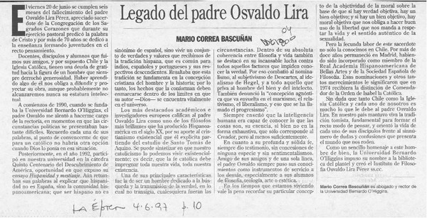 Legado del padre Osvaldo Lira [artículo] Mario Correa Bascuñán.