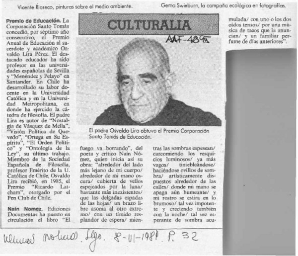 Homenaje al sacerdote Osvaldo Lira [artículo].
