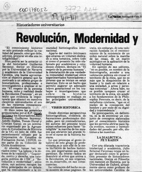 Revolución, modernidad y democracia [artículo] Cristián Antoine.