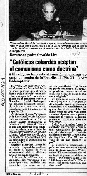 "Católicos cobardes aceptan al comunismo como doctrina" [artículo].
