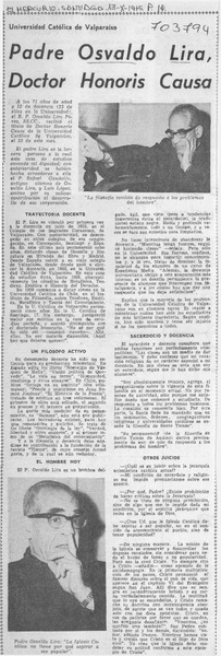 Padre Osvaldo Lira doctor Honoris Causa. [artículo]