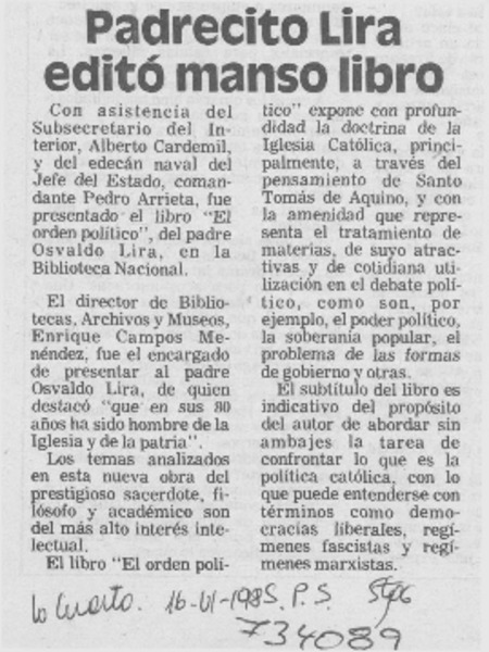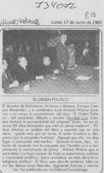 Autores chilenos - Lira Pérez, Osvaldo - Orden político