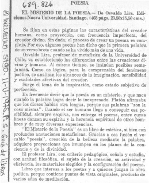Autores chilenos - Lira Pérez, Osvaldo - Misterio de la poesía