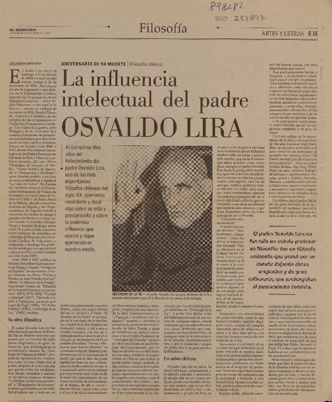 La influencia intelectual del padre Osvaldo Lira. [artículo] José Joaquín Ugarte Godoy.