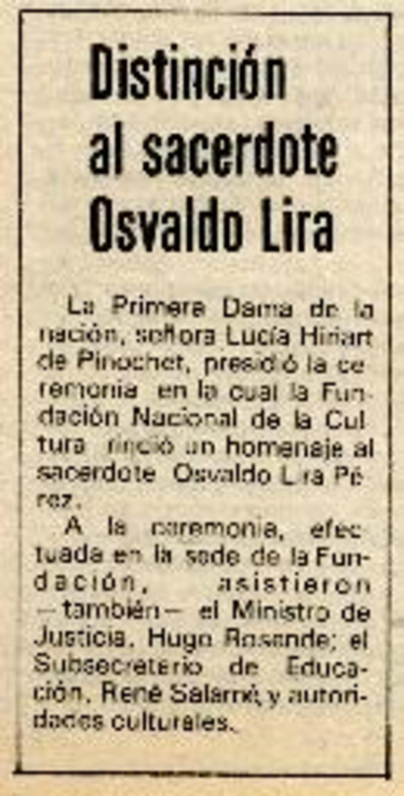 Distinción al sacerdote Osvaldo Lira [artículo].
