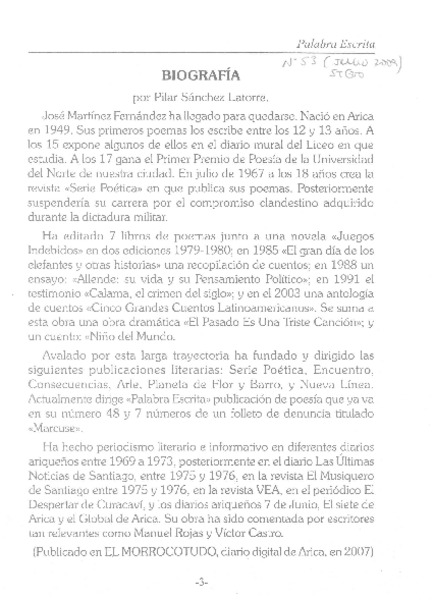 Semblanzas profundas : José Martínez Fernández [artículo] Daniel Rojas