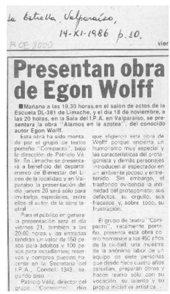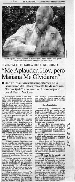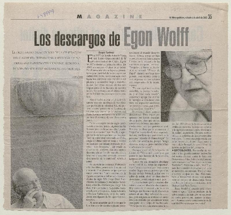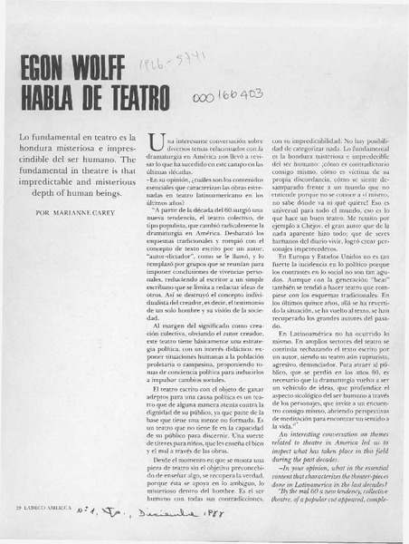 Egon Wolff habla de teatro [artículo] Marianne Carey.