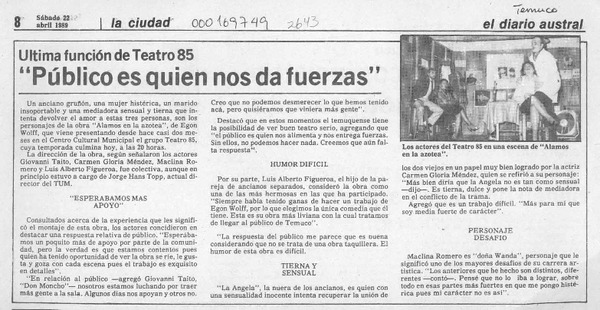 Teatristas confiesan, "sí, la escribí por amor" [artículo] Rocío Lineros