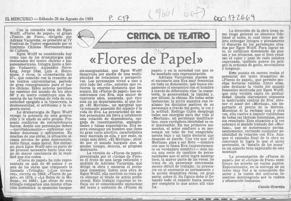 Autores chilenos - Wolff, Egon - Flores de Papel