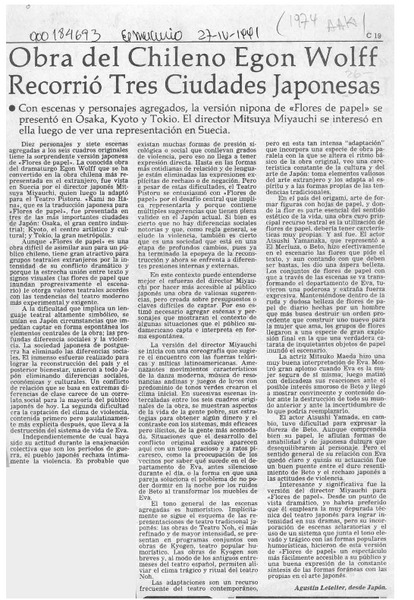 "Flores de papel" en próximo montaje del teatro municipal [artículo].