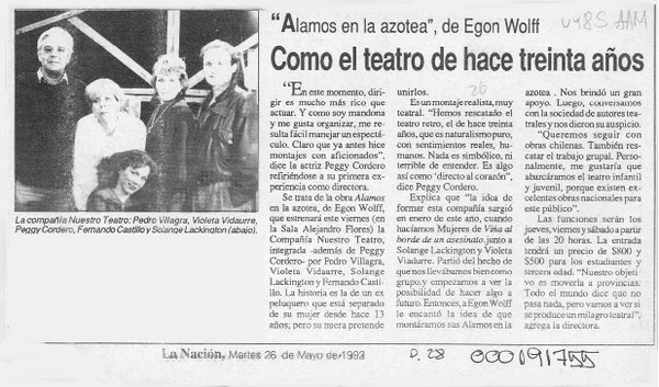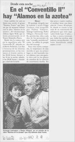Teatro expresión estrena obra "alamos en la azotea". [artículo]