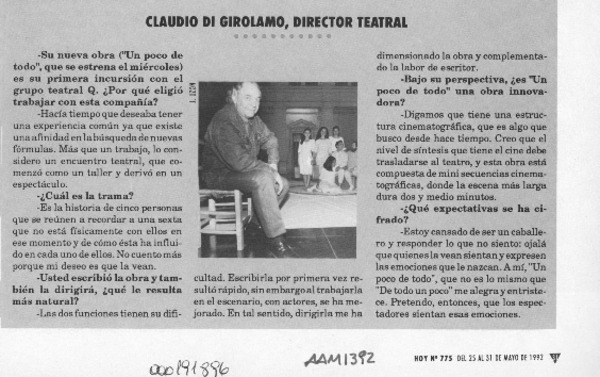 "Mi deuda es escribir una obra sobre un hombre frente a la muerte" [entrevista] [artículo] Eduardo Miranda.