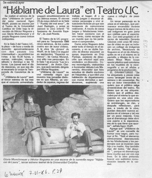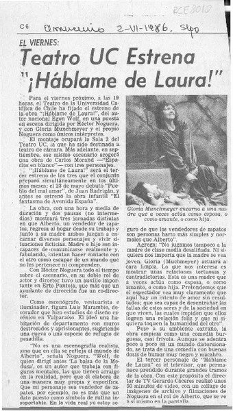 Teatro UC estrena "Háblame de Laura" [artículo].
