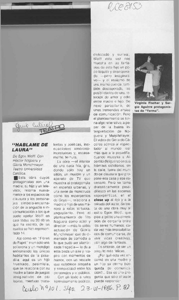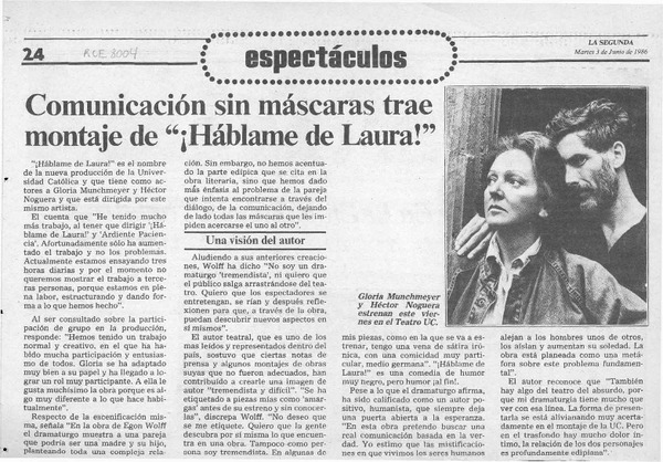 Comunicación sin máscaras trae montaje de "Háblame de Laura" [artículo].
