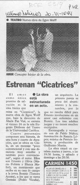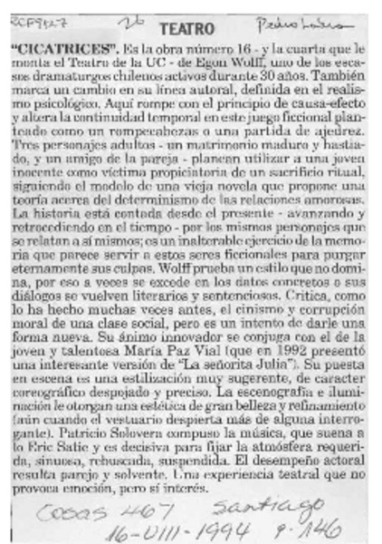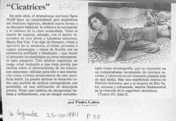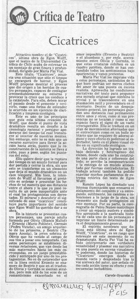 Cicatrices, nueva obra de Egon Wolff [artículo].