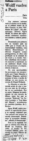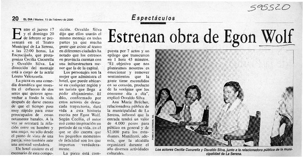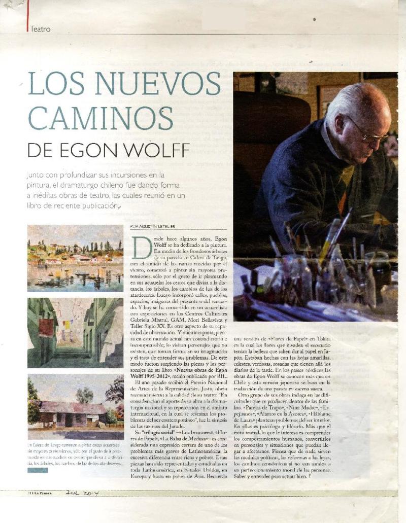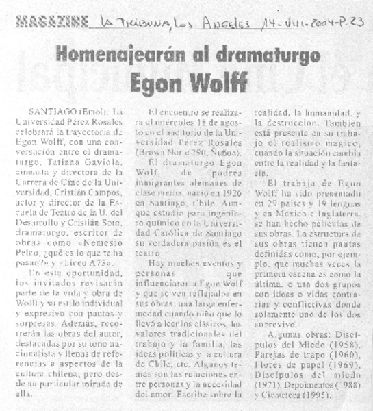 Egon Wolff estrena nueva obra y tendrá dos piezas en cartelera [artículo] Jorge Letelier.