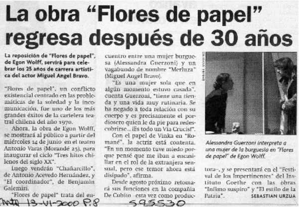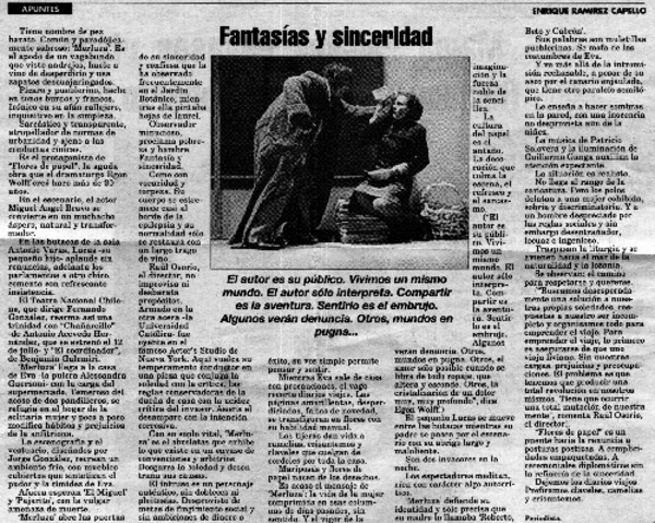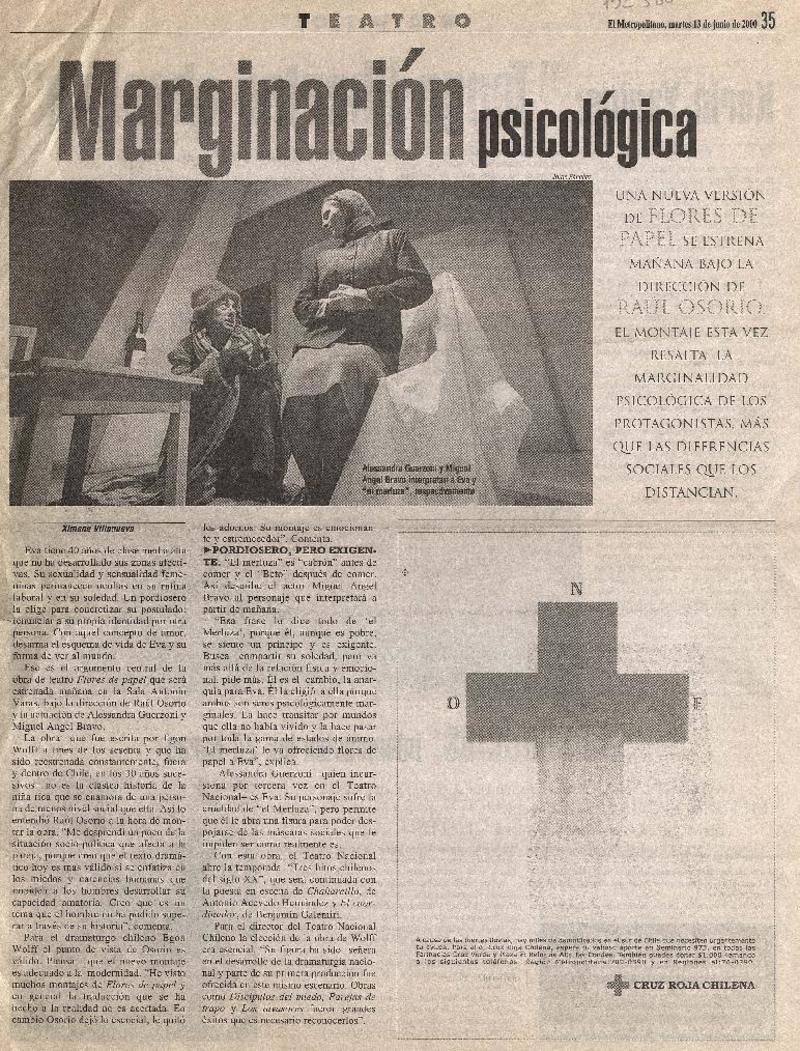 Teatro UC apuesta por "flores de papel" como su gran carta para el segundo semestre [artículo] Eduardo Miranda.