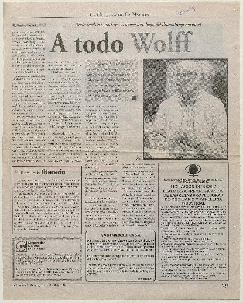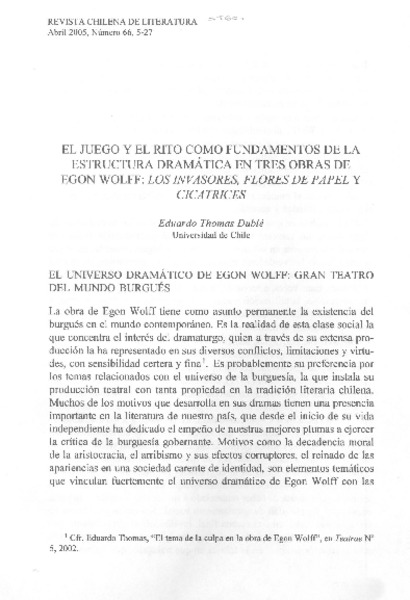Egon Wolff "Teatro completo" [artículo] Eduardo Guerrero del Río.