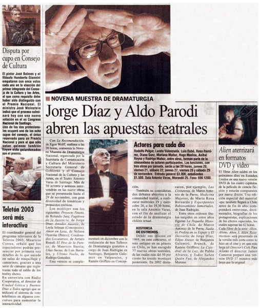 Teatros preparan nuevos estrenos [artículo] Juan Andrés Piña.